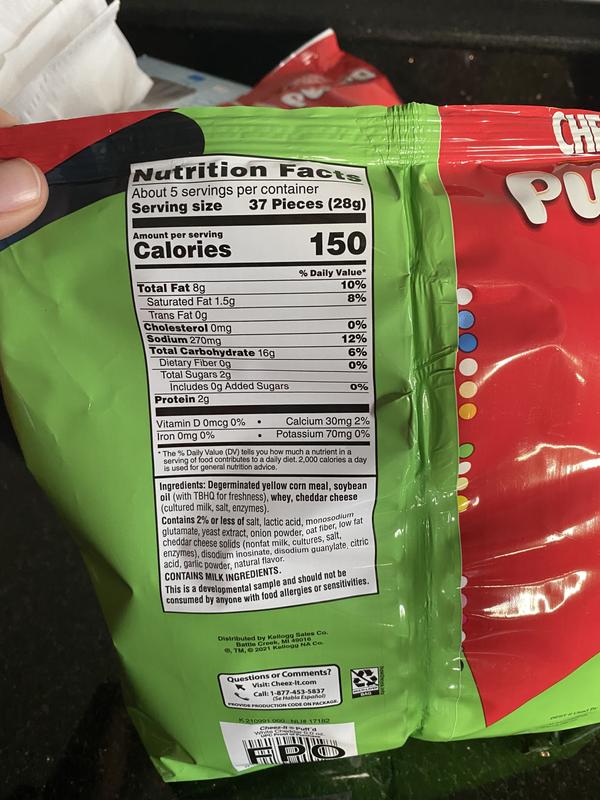 Nutrition facts on cheez its. Cheez-its - White Cheddar Cheez-its calories, carbs & nutrition facts ... Cheez-its - White Cheddar Cheez-its calories, carbs & nutrition facts | MyFitnessPal Cheez-its Cheez-its - White Cheddar Cheez-its Serving Size : 1 package (1.5oz) 210 Cal 50% 26g Carbs 43% 10g Fat 8% 4g Protein Track macros, calories, and more with MyFitnessPal. Join for free! Daily Goals How does this food fit into your daily goals? Cheese-its Nutrition Facts - Eat This Much Cheez-It Find on Amazon Percent calories from... Quick stats 150 Calories 17g Carbs (17g net carbs) 8g Fat 3g Protein No price info Try our free Diet Generator I want to eat calories in meals. I like to eat Note: Any items purchased after clicking our Amazon buttons will give us a little referral bonus. If you do click them, thank you! Calories in Cheez It - Calorie, Fat, Carb, Fiber, & Protein Info Calories, Fat, Protein, Fiber, & Carbs In Cheez It Reduced Fat; Calories, Fat, Protein, Fiber, & Carbs In Cheez Its; Calories, Fat, Protein, Fiber, & Carbs In Cheez It Party Mix; Calories, Fat, Protein, Fiber, & Carbs In Cheez It 100 Calorie; 2400 Calorie Weight Loss Meal Plan; Ingredient Specific Calorie Information From Our Recipes: Calories ... Is Cheez Its Healthy? - Healthyfoodforliving.com Each serving of Cheez-Its contains approximately 150 calories. And it is to be kept in mind that each serving is only 30 grams. Even though a serving of 27 crackers sounds like a big number, as the weight of a serving suggests, they are pretty small. You can fit around 10 of these in your palm with ease. If the math is done, each small cracker ...