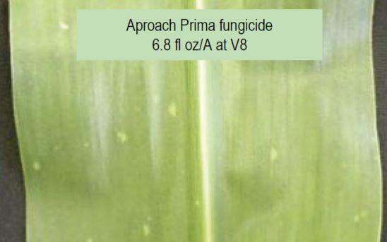 Statewide soybean foliar fungicide evaluation in 2020 With support from the soybean checkoff through the United Soybean Board, Iowa State University researchers evaluated foliar fungicides on soybean in 2020. Because dry weather affected all seven field locations, this year was really an evaluation of fungicides largely in the absence of disease. Seventeen fungicides were tested at the R3 (beginning pod) growth stage, at the recommended label rate.