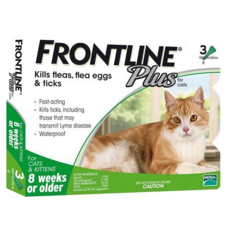 Frontline Guide: Everything You Need to Know - AZ Animals Frontline Plus for Cats is a waterproof, fast-acting flea and tick treatment, which kills fleas, flea eggs, lice, and ticks, and includes those that may transmit Lyme disease to your cat. This product is specifically used for cats and kittens who are eight weeks or older and weighing at least 1.5 pounds or more.