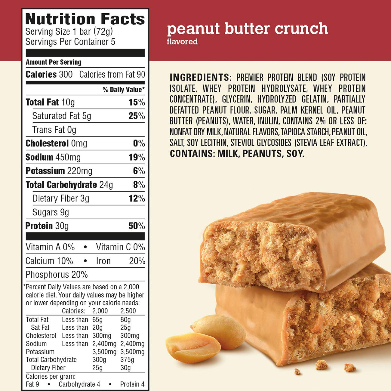 Premier Protein | Premier Protein® Chocolate Peanut Butter Bar | FREE 1 ... Each bar contains 30g protein, 3g Fiber, 10% DV Calcium, 25% DV Iron Packed with protein for sustained, good energy throughout the day. Great for a meal replacement or a snack on-the-go. Available in 5 delicious flavors: Chocolate Peanut Butter, Yogurt Peanut Crunch, Double Chocolate Crunch, Dark Chocolate Mint, and Peanut Butter Crunch. Protein Shakes | Premier Protein Protein Shakes 30 g Protein 160 Calories 1 g Sugar 24 Vitamins & Minerals Low Fat Your favourite 3PM snack. Your not-so-secret coffee mixer. Your go-to snack when you're headed out, winding down after a workout or fueling up between plans. Cereals - Premier Protein Cereal Wheat Gluten, Almonds, Wheat Protein Isolate, Pea Protein Concentrate, Corn Flour, Sugar, Dried Strawberries, Dried Raspberries, Salt, Strawberry Juice Concentrate ... Premier Nutrition Company, LLC Premier Nutrition. Brands; Culture; Pay It Forward; People; Careers; We bring good energy to the world. We are champions of great-tasting nutrition. We manage a collection of amazing brands—each designed to deliver high-quality, great-tasting nutrition that fits into people's lives.