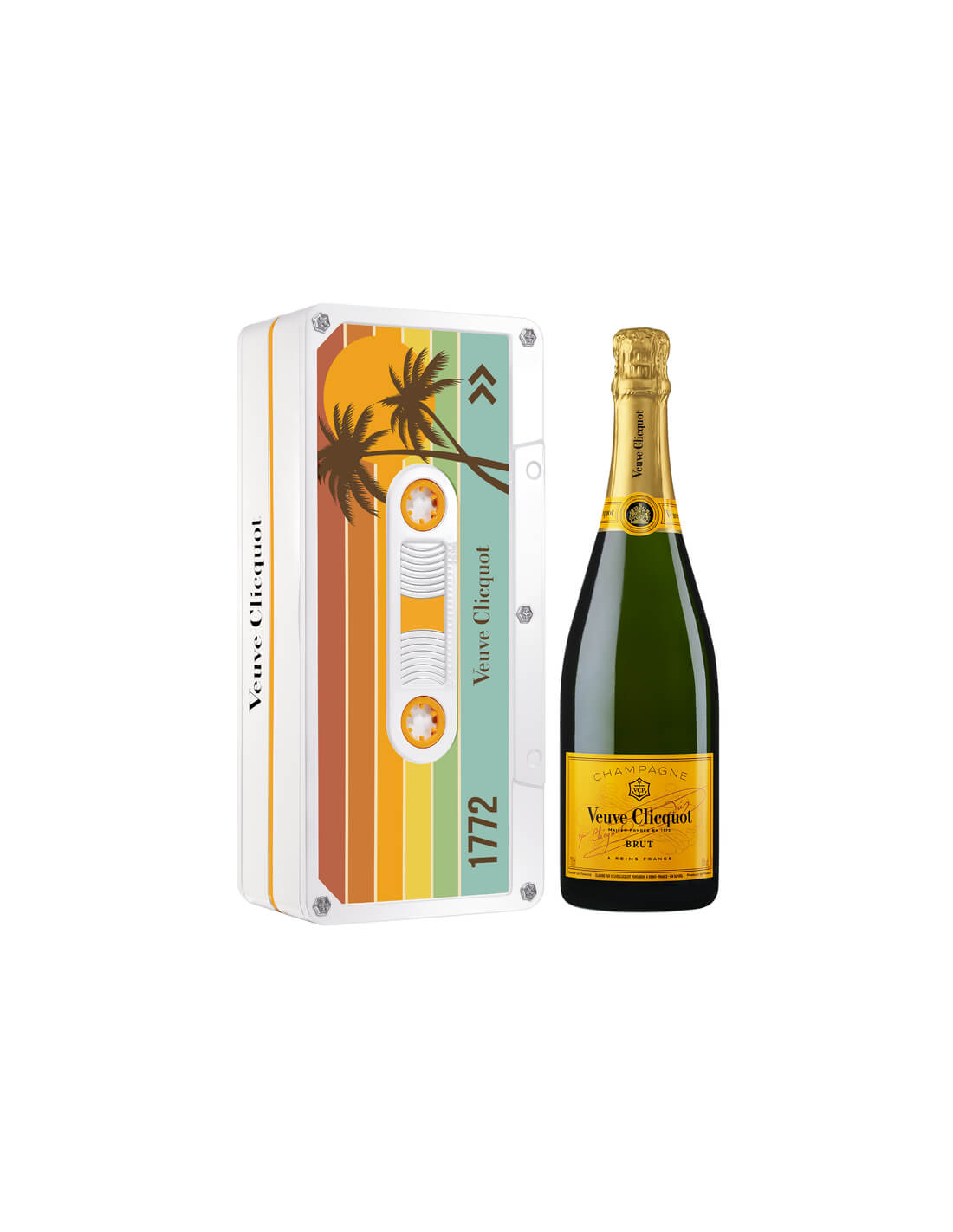 Veuve Clicquot Yellow Label Cassette Tape Price & Reviews | Drizly Product description. Discover the Veuve Clicquot Cassette Tape, available in a unique collection of 6 distinct designs that house the iconic Yellow Label. The metallic cassette tape tin holds one 750ML bottle and keeps it chilled for up to 2 hours. View all products by Veuve Clicquot California Residents: Click here for Proposition 65 WARNING.