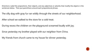 Parts of Speech Worksheets | Ereading Worksheets Then, students write original sentences using adverbs and adjectives and label them. Adverbs and Adjectives with Magical Horses Worksheet RTF Adverbs and Adjectives with Magical Horses Worksheet PDF ... Parts of Speech Newspaper – Create a newspaper with eight articles featuring stories about the parts of speech. The eight stories should ...