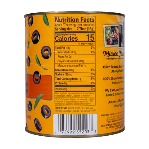 Black Olives Dietary Value - Proper Nutrition | NutritionOfPower.com But this is a misnomer, according to the Olive Oil Source. In fact, black olives are green and Black Olives Nutrition. Per ounce, canned black olives provide 33 calories, 0.25. 0.3g. There are 36 calories in 1 10 small serving of Black Olives. Calorie breakdown: 76% fat, 21% carbs, 3% protein.Nutrition facts. Unico, Black Olives, Sliced Ripe Nutrition Facts & Calories Rich in vitamins and minerals (46.9%/cal) - a good source of Vitamin B12, Zinc, Iron, Vitamin B6, Copper, Phosphorus, Calcium and Selenium. Contains a moderate amount of risky components that may include saturated fat and sodium (0.01%/oz). Good source of fiber (27% of DV/100g). Calories in 1 Tablespoon (0.5 oz) 20 calories / 18 from fat Are Black Olives Vegan? Fully Explained! - CanVegansEat.com Black olives are specifically rich in iron, which is great for your red blood cells in oxygen transmission. Olives have antioxidant properties that are helpful in reducing the risk of several chronic diseases such as cancer and heart illness. They're also packed with oleic acid, which is linked to heart-healthy benefits. Pearls Sliced Ripe Black Olives - 2.25oz : Target Olive type: Black Olives. Net weight: 2.25 Ounces. TCIN: 13192026. UPC: 072999493033. Item Number (DPCI): 212-06-0179. Origin: Made in the USA or Imported. Grocery Disclaimer: Content on this site is for reference purposes only. Target does not represent or warrant that the nutrition, ingredient, allergen and other product information on our ...