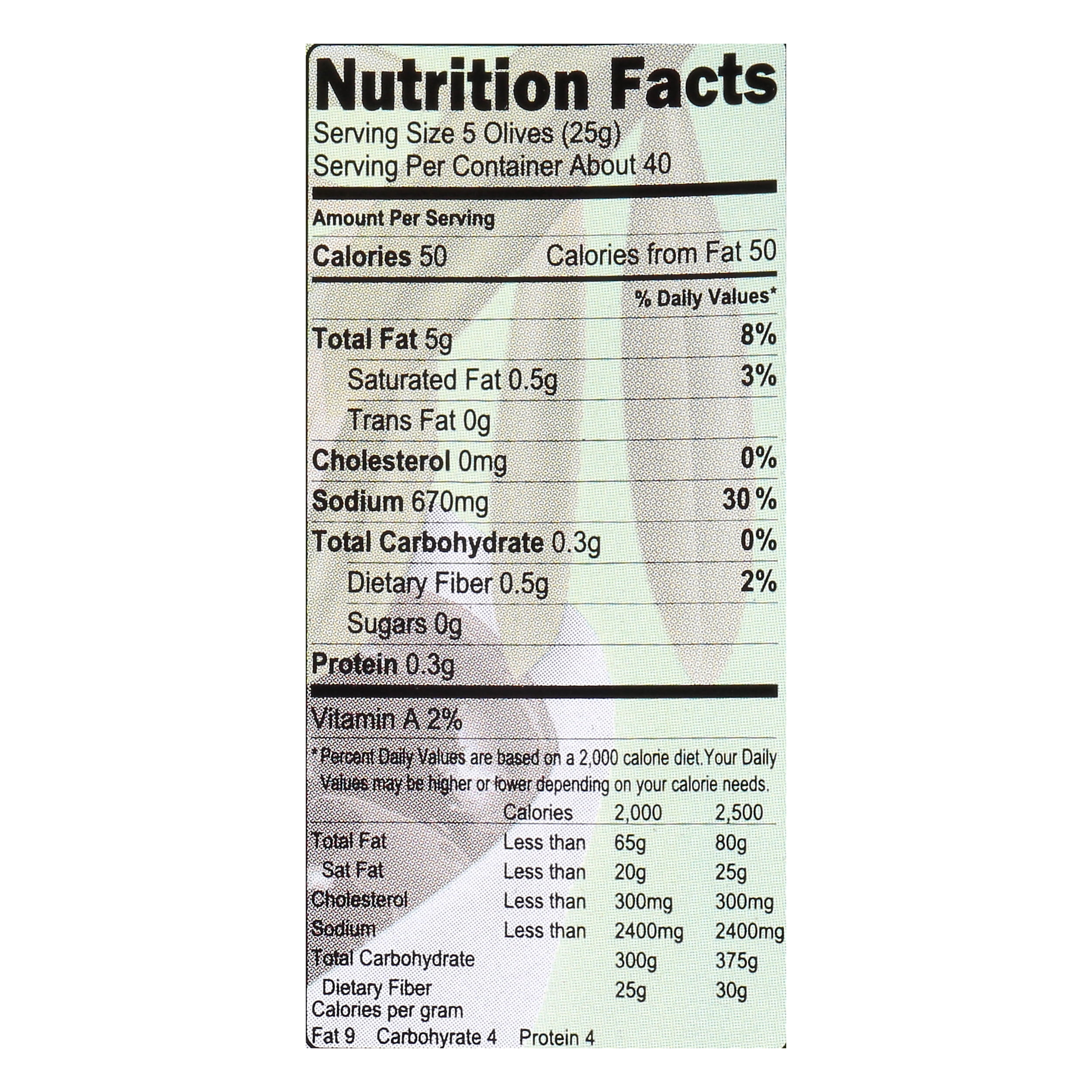 40 black olives nutrition label