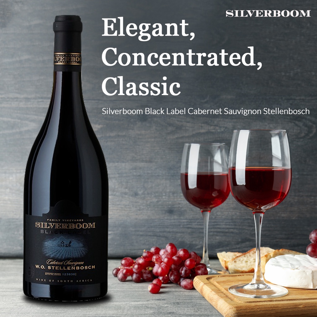 Silverboom - Black Label - Cabernet Sauvignon | South African Red Wine DESCRIPTION Full-bodied, concentrated and elegant, Silverboom Black Label has an intense deep red color in the glass with a dark, almost black hue. In its aroma, you are met with a wealth of red and black berries such as blackcurrants, strawberries and blueberries.