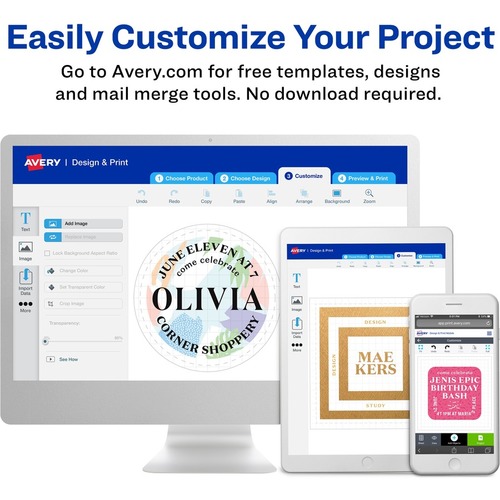 Avery High-Visibility Inkjet Multipurpose Labels, 1 1/2" Dia., Matte ... These Avery permanent adhesive round labels come with 400 per pack so keeping them stocked up is easy. The print-to-the-edge feature enables you to add any color background to ensure your items stand out. Multipurpose labels suitable for a variety of labeling purposes, including boxes, envelopes, and more Round 1 1/2" diameter labels Free Label Printing Software - Avery Design & Print Avery Design & Print Free software and templates. Make designing simple. Start Your Design Watch a Demo Create visually engaging designs, whether you are a seasoned designer or a total novice. Free Templates Personalize one of our professionally designed templates for a jump-start on bringing your ideas to life. Add & Edit Images