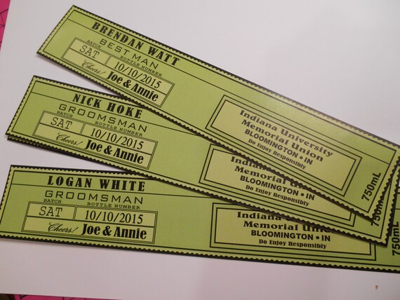 Liquor Labels - I Do Artsy Weddings Personalized Groomsmen and Best Man Whiskey Labels $ 7.50 Personalized Groomsmen Flask with Labels $ 25.00 Personalized Liquor Labels - Arched Labels Made to fit $ 6.00 Personalized Officiant Whiskey Label $ 14.75 Personalized Tuxedo Liquor Labels - Wrap around -XL $ 9.50 Photo Beer Carton and Label - Will you be my Groomsman, Best Man $ 12.00