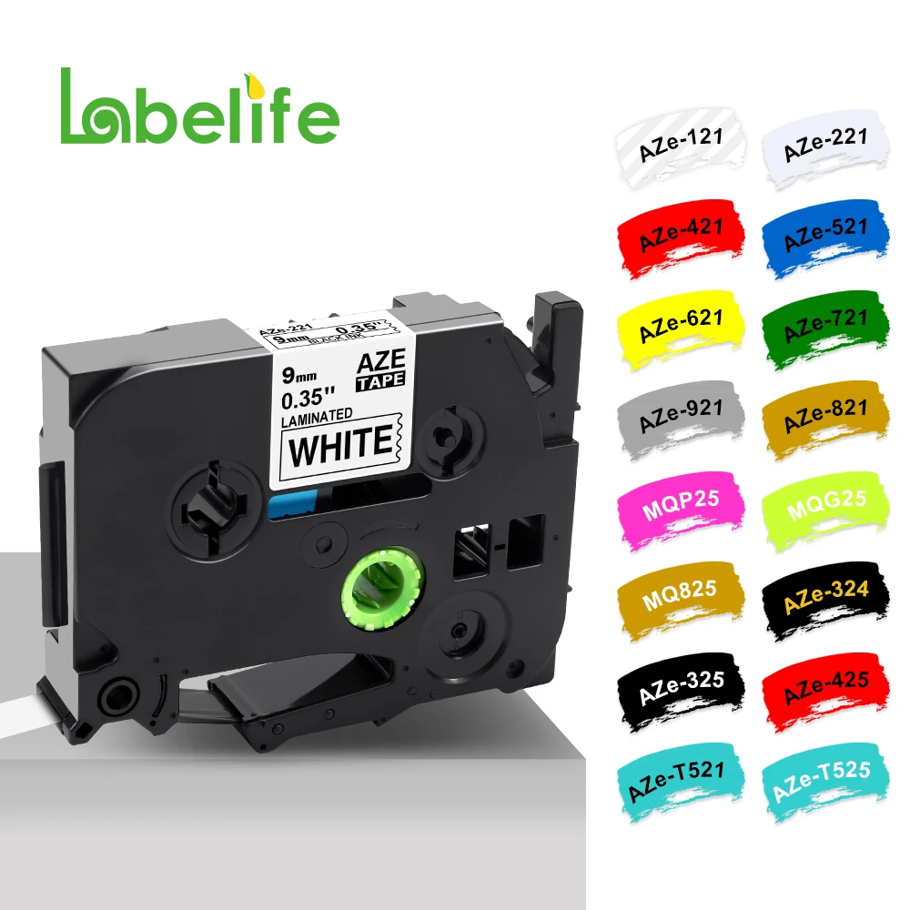 Labelife TZe-221 tze-221 tze121 9mm Black on White tze-421 Compatible for Brother label maker tape 9mm for PT-D200 PTH110