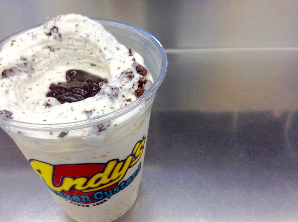 ANDY'S FROZEN CUSTARD - 87 Photos & 99 Reviews - Yelp It did not disappoint! The small size costs $5.19 and it was huge! And only 800 calories! Yikes! Boot Daddy goodness - vanilla frozen custard with Oreo crumbles, caramel and hot fudge! Useful. ... or pumpkin pie. Classic go to flavors are their James Brownie Funky Jackhammer which is Andy's frozen custard blended with creamy peanut butter and ...