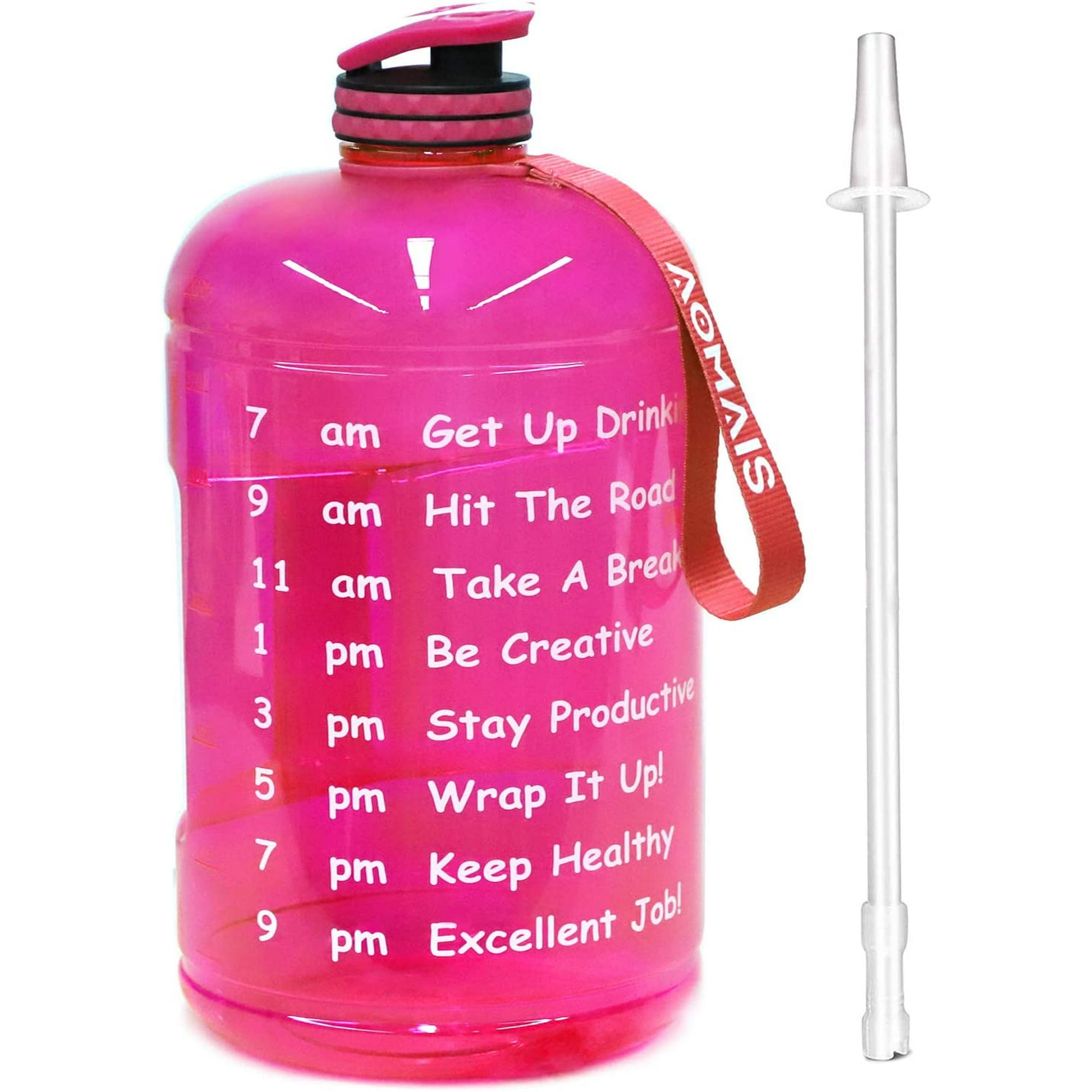 AOMAIS Half Gallon Water Bottle with Motivational Time Marker, Leak-Proof, Wide Mouth, BPA Free Water Bottles for Sports Gym Fitness Work