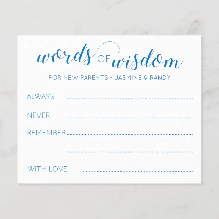 Blue Words of Wisdom New Parent Advice Baby Shower | Zazzle