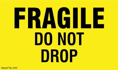 Kenco 3" X 5" Fragile Do not Drop Fluorescent Shipping Label Stickers - 500 Permanent Adhesive Labels Per Roll