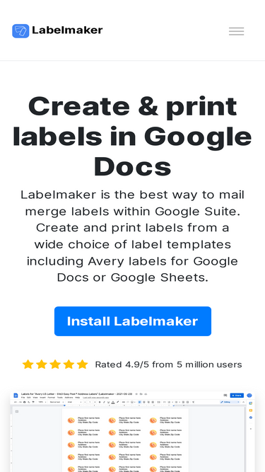 Avery Label Merge - Google Workspace Marketplace Mail Merge envelopes, labels, QR Codes and Barcodes from Google Docs and Google Sheets. The best way to create and print labels using accurate compatible ...