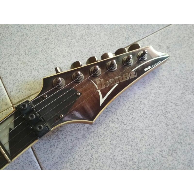 Ibanez RG4EXFM1 Electric Guitar Transparent Gray Burst The RG guitar's flamed maple top not only adds beauty, but just a bit of extra brightness to make individual notes stand out. 24 frets offer easy playing for leads and chording and the Ibanez RG4EXFM1 has a tremolo bridge that lets you dive-bomb all night long. A locking nut helps keep you in tune.