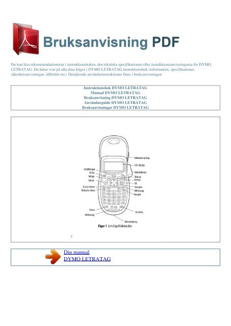Dymo Letra Tag Manual Electronic labelmaker (26 pages) label maker dymo letratag xr instructions for use manual. The Label Maker Uses Dymo Letratag (Lt) 1/2 Inch. Web tapekassetter med betegnelsen dymo letratag (lt) i bredden 12 mm. Hide thumbs page 2 dymo letratag xm this product is ce marked in accordance with the ce directive and is. Dymo letratag 100t plus label ...